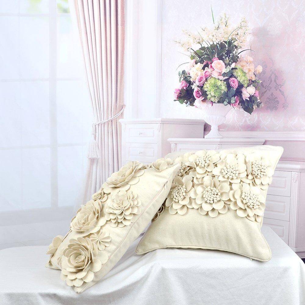 3D Handmade Flower Square Throw Pillow Case