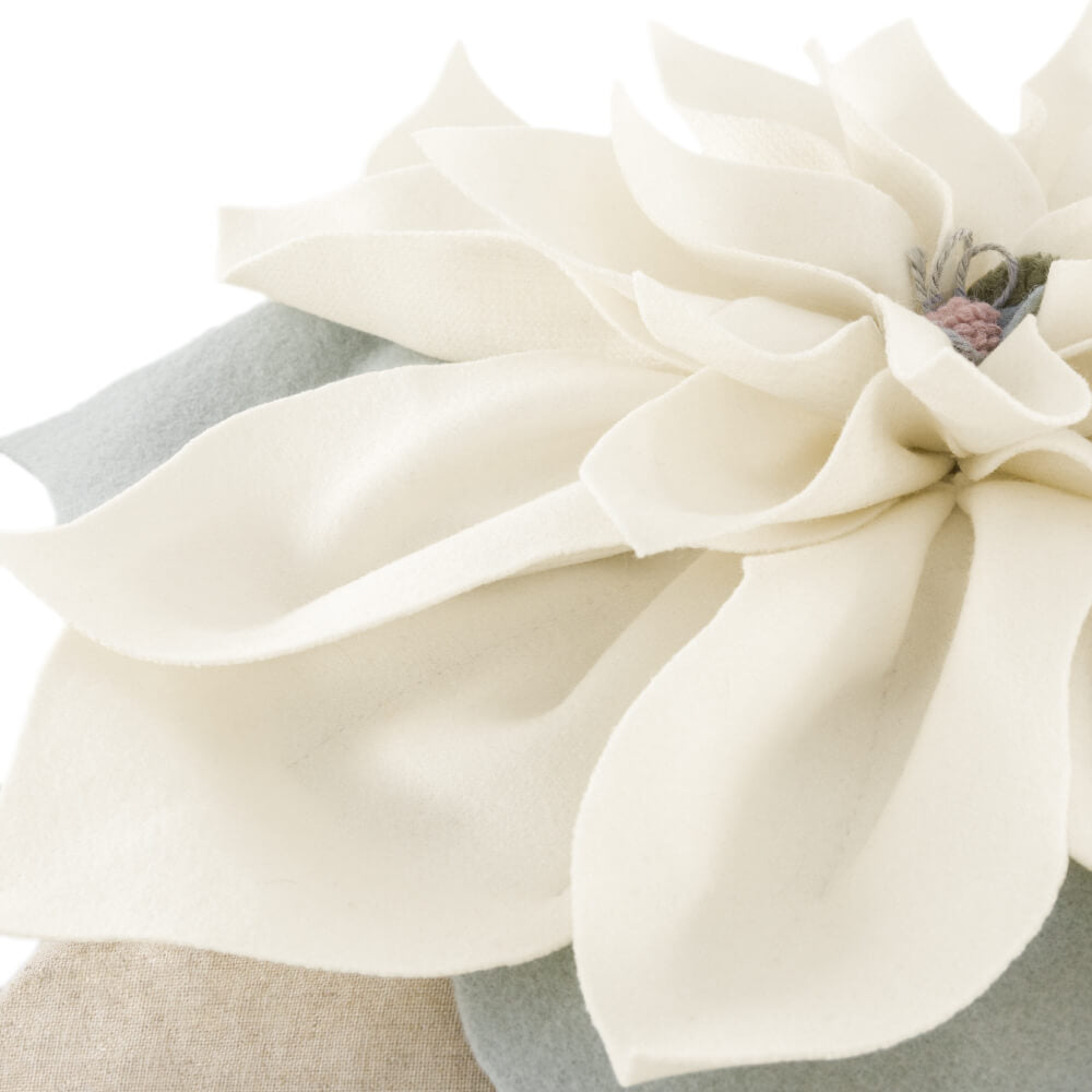 Technique and Craft:Handmade Flower out of specific mold with nice and clean edge;Exquisite stitching and vivid shape as poinsettia flower makes the pillow extremely attractive;All over locked inside edge,clean and sturdy could keep nice after washing;The white and natural linen fabric will bring your space fresh decoration;
