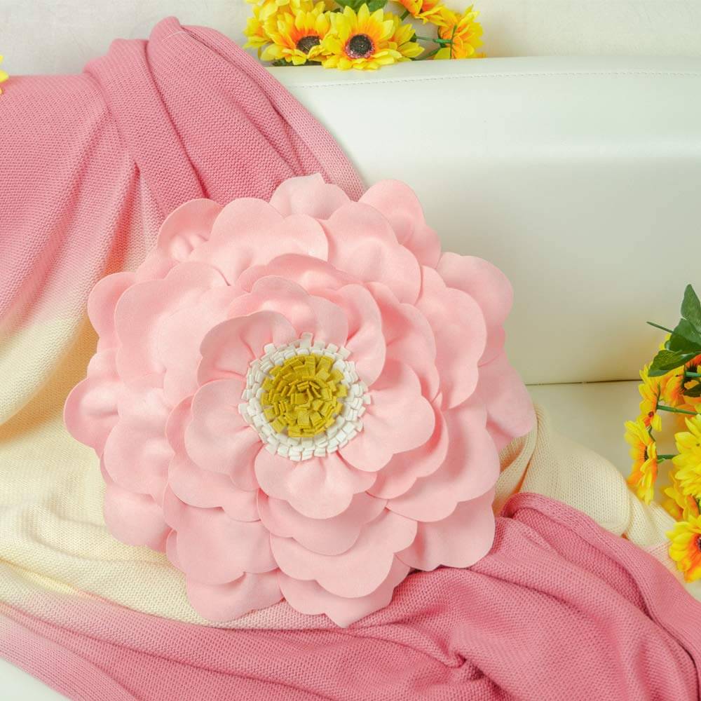 3D Organza Flower Round Decorative Throw Pillow with Insert