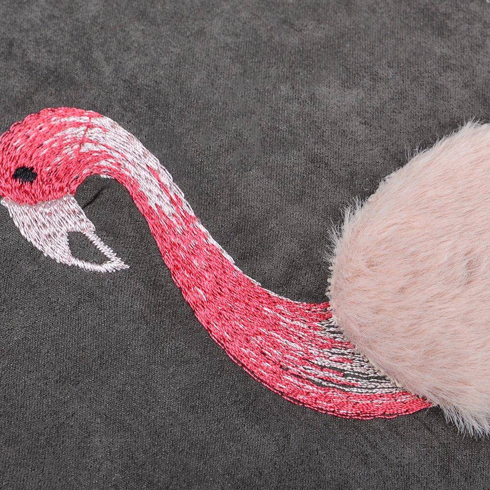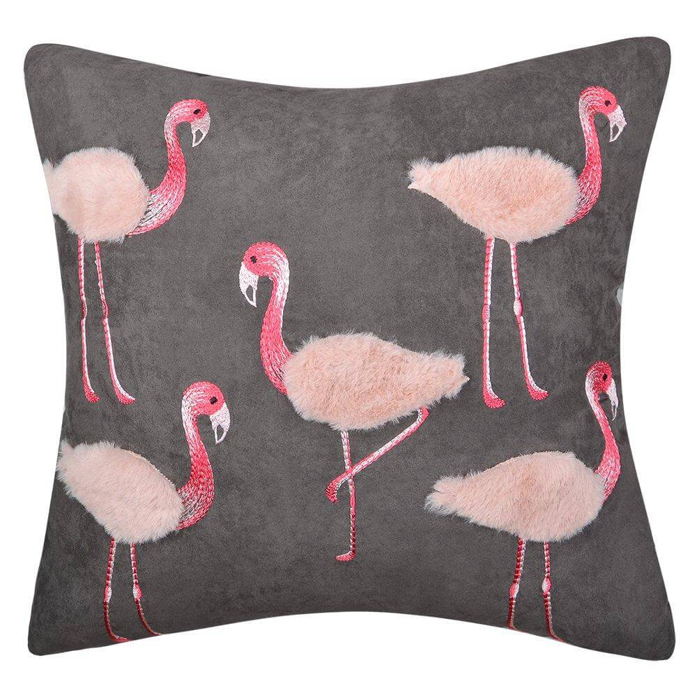 Embroidered and Printed Flamingo Throw Pillow Cover