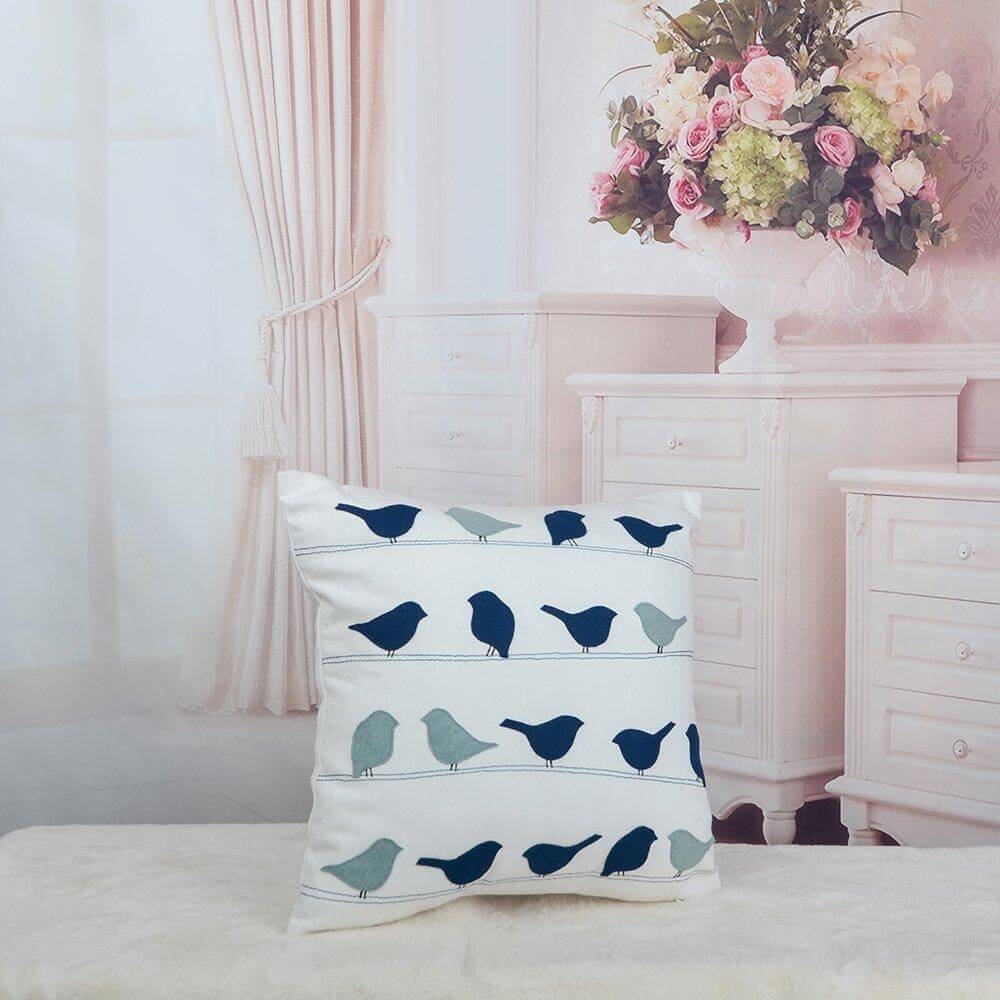 Embroidered Sturdy Canvas Pillow Case with Birds