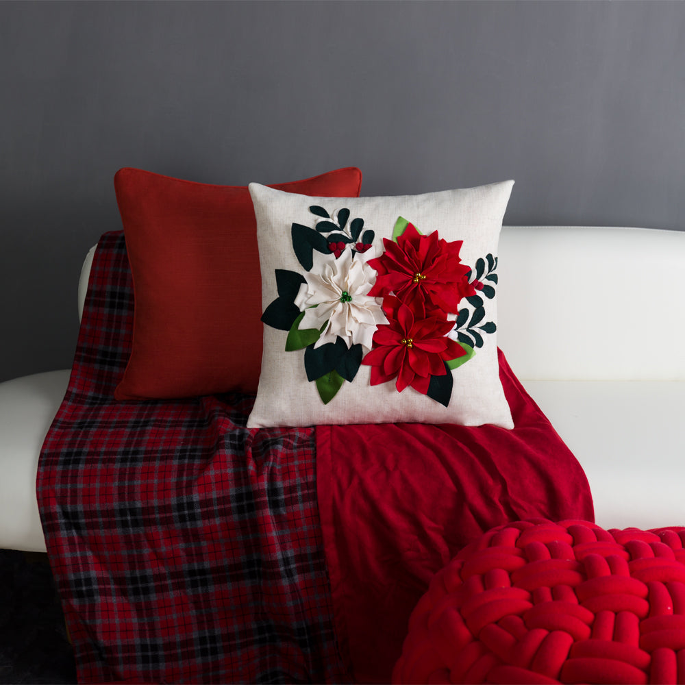 The Poinsettia Christmas pillows with the three flowers are really joyful for the holiday.It adds happiness and makes your room bright with the red and green color.Your space will be instantly updated with the holiday poinsettia flower throw pillow.