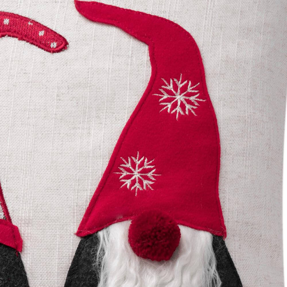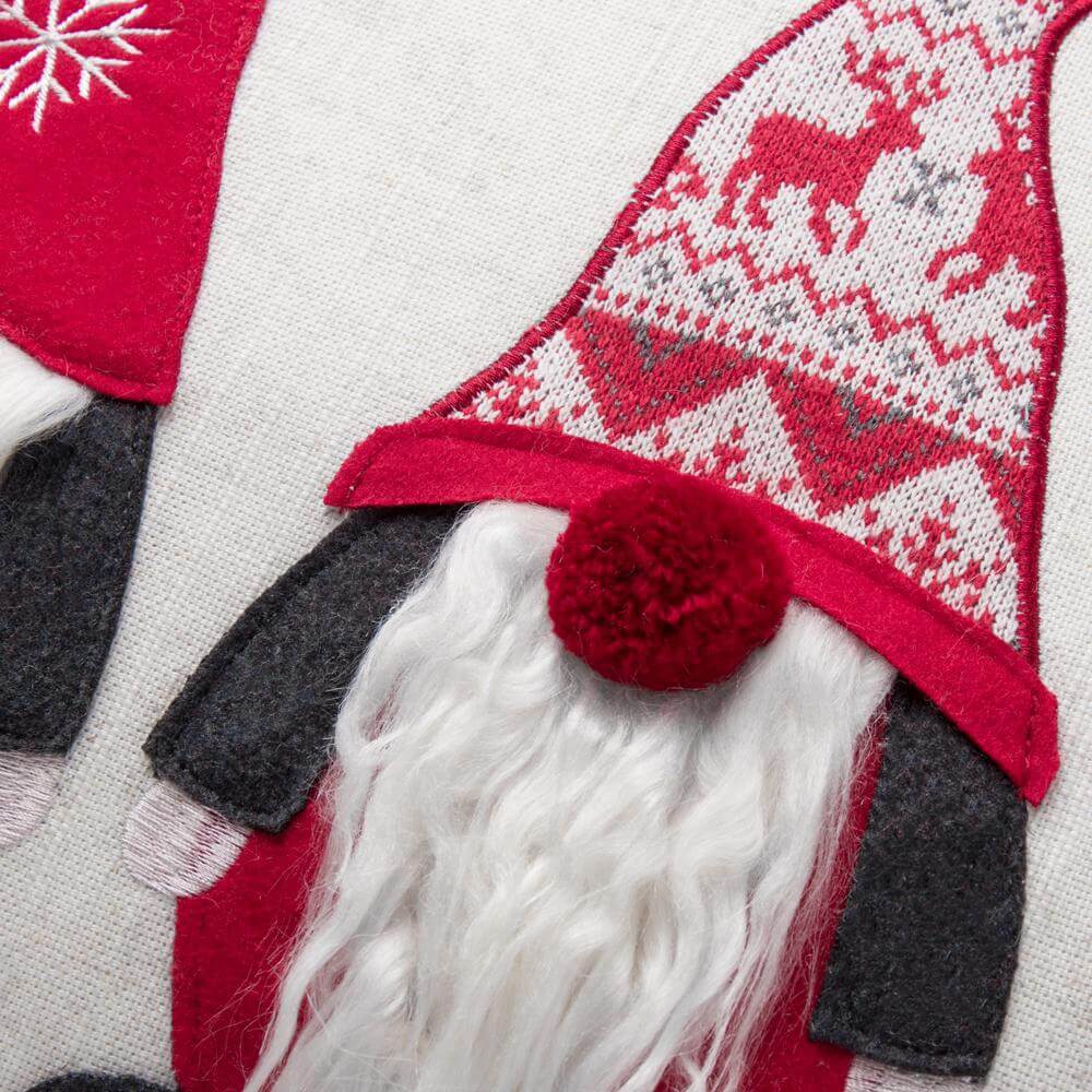 Gnome Embroidery Christmas Pillow Case in Red/Grey