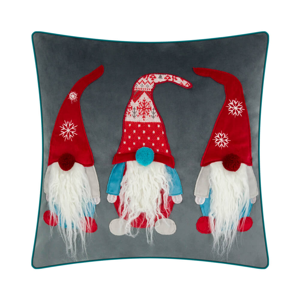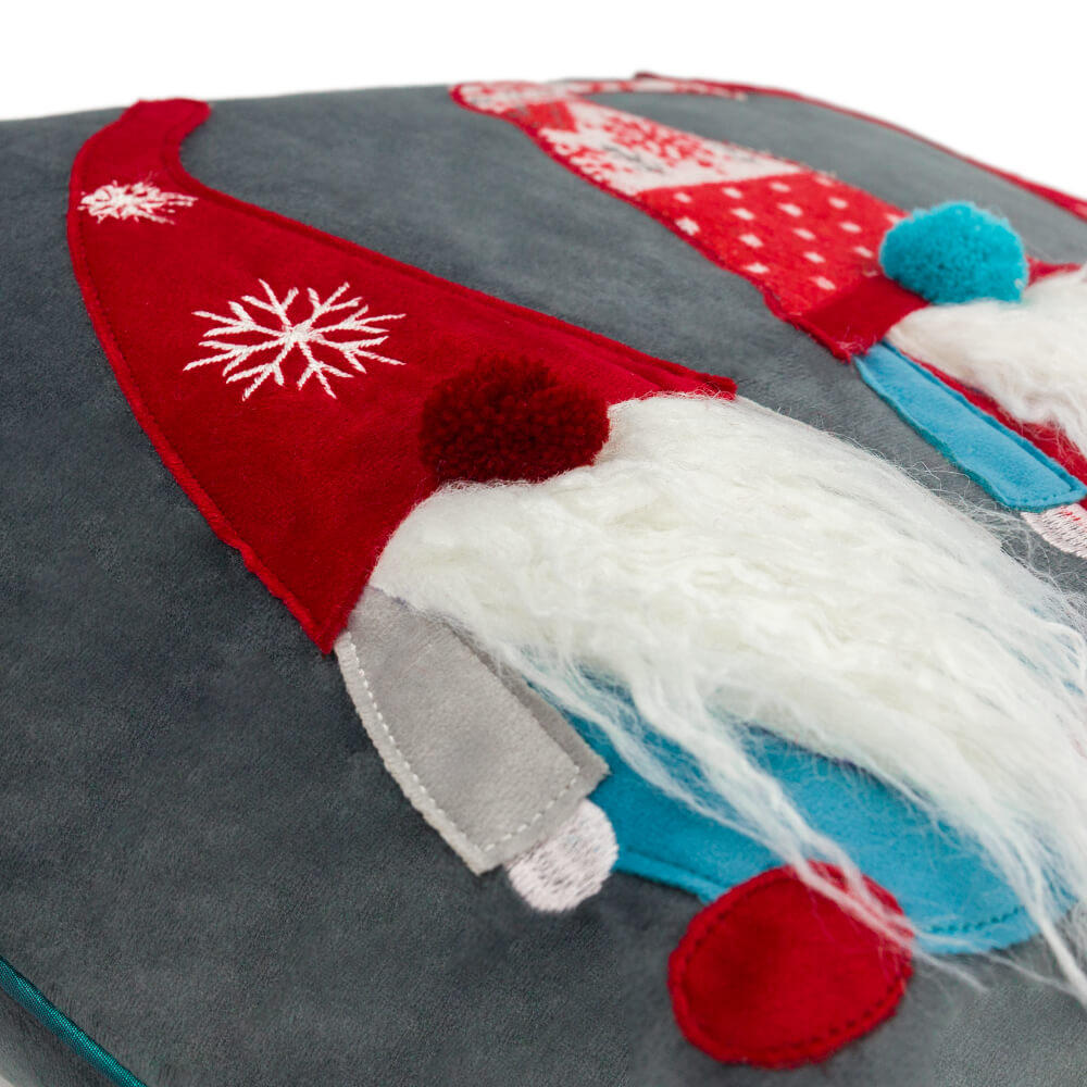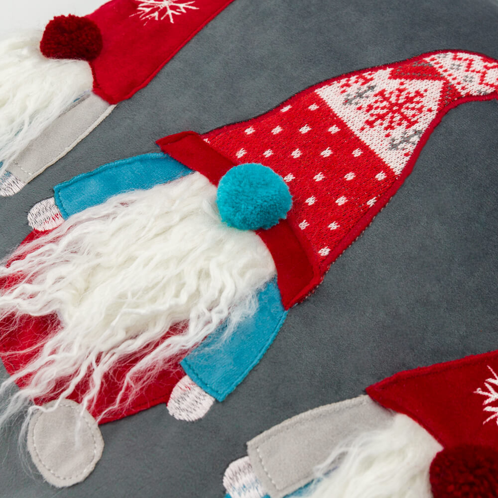 Gnome Embroidery Christmas Pillow Case in Red/Grey