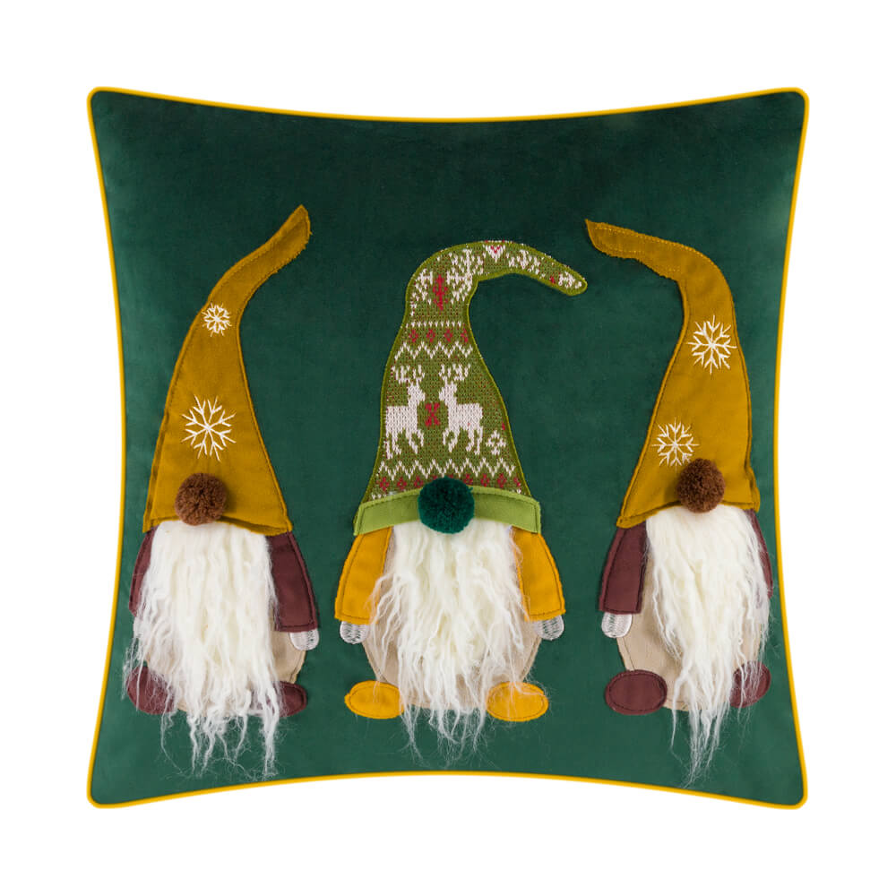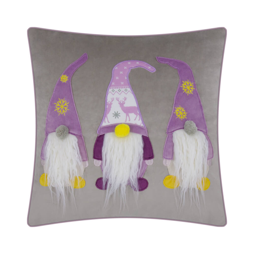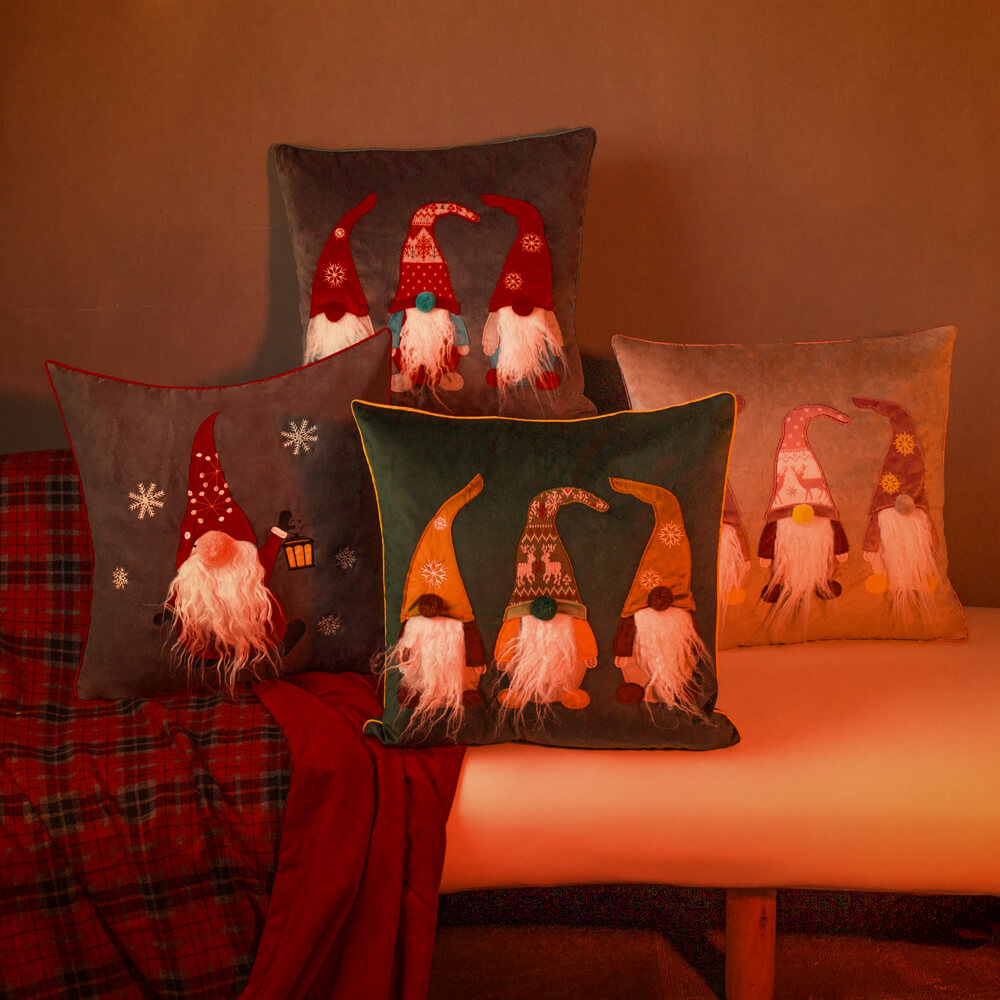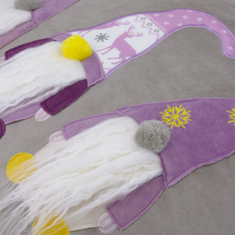 Gnome Embroidery Christmas Pillow Case in Red/Grey