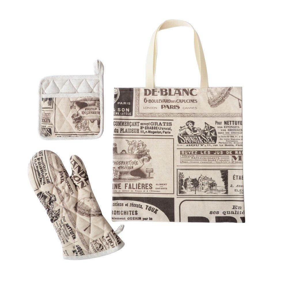 The kitchen apron set with the newspaper like printing looks classic and interesting.You will have an art fan look.Rather than boring or tiring,you will find the cooking process relaxing and also you would enjoy it.