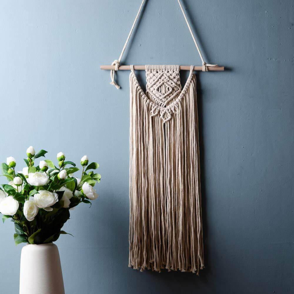 Grid Crochet Woven Tapestry Wall Art Hanging with Tassel