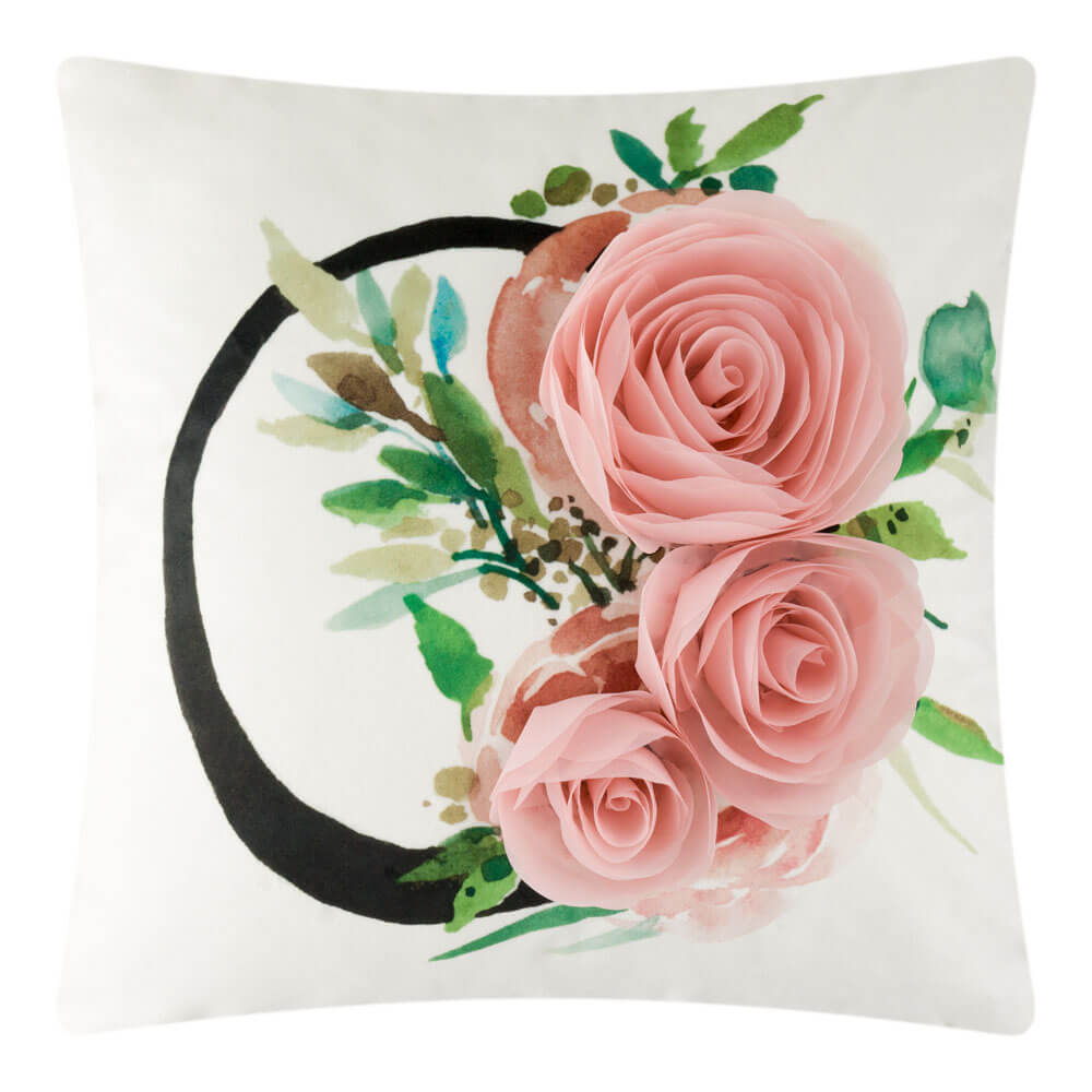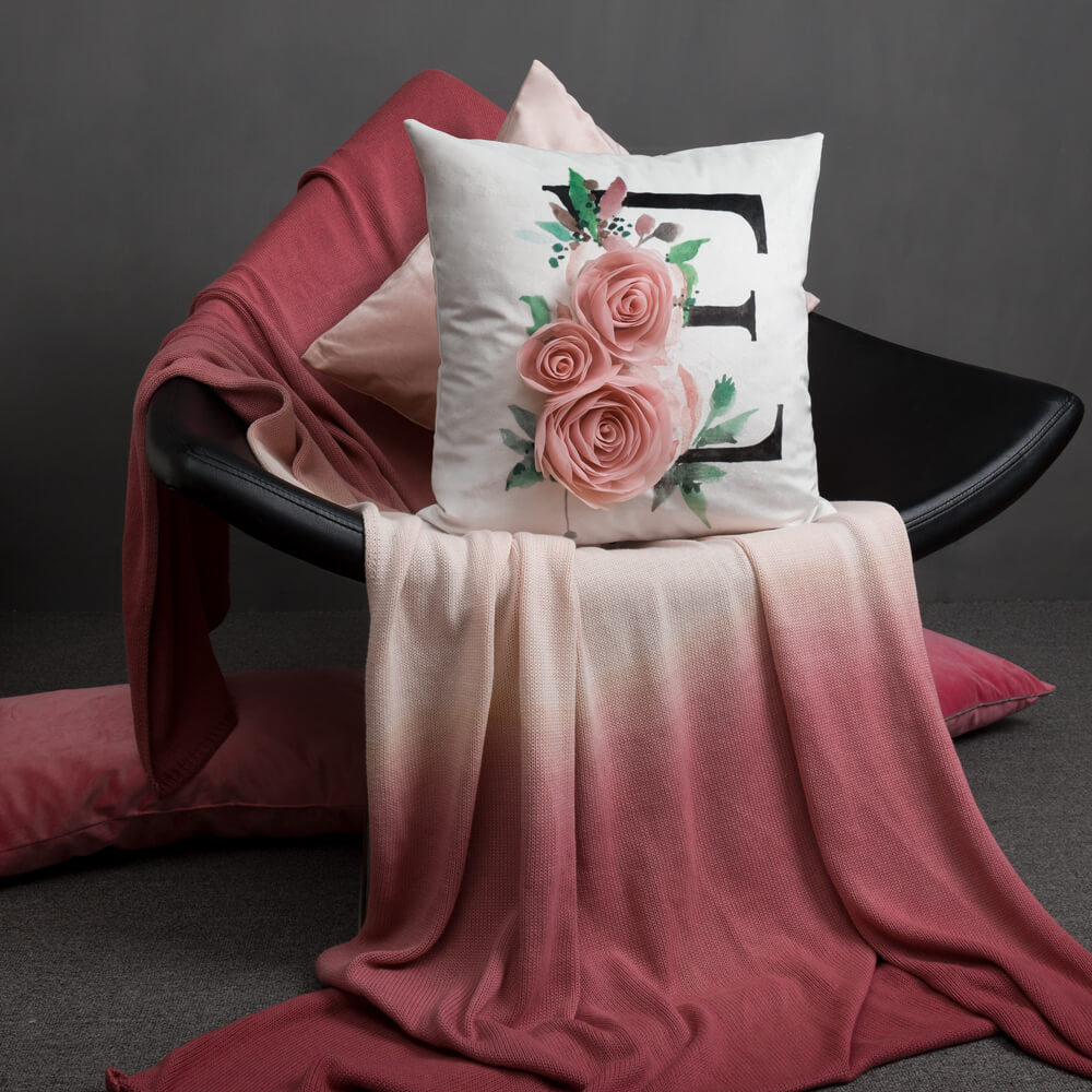 LOVE accent pillow case: high quality velvet with printing; 3D Flower: warm color gauze in pink